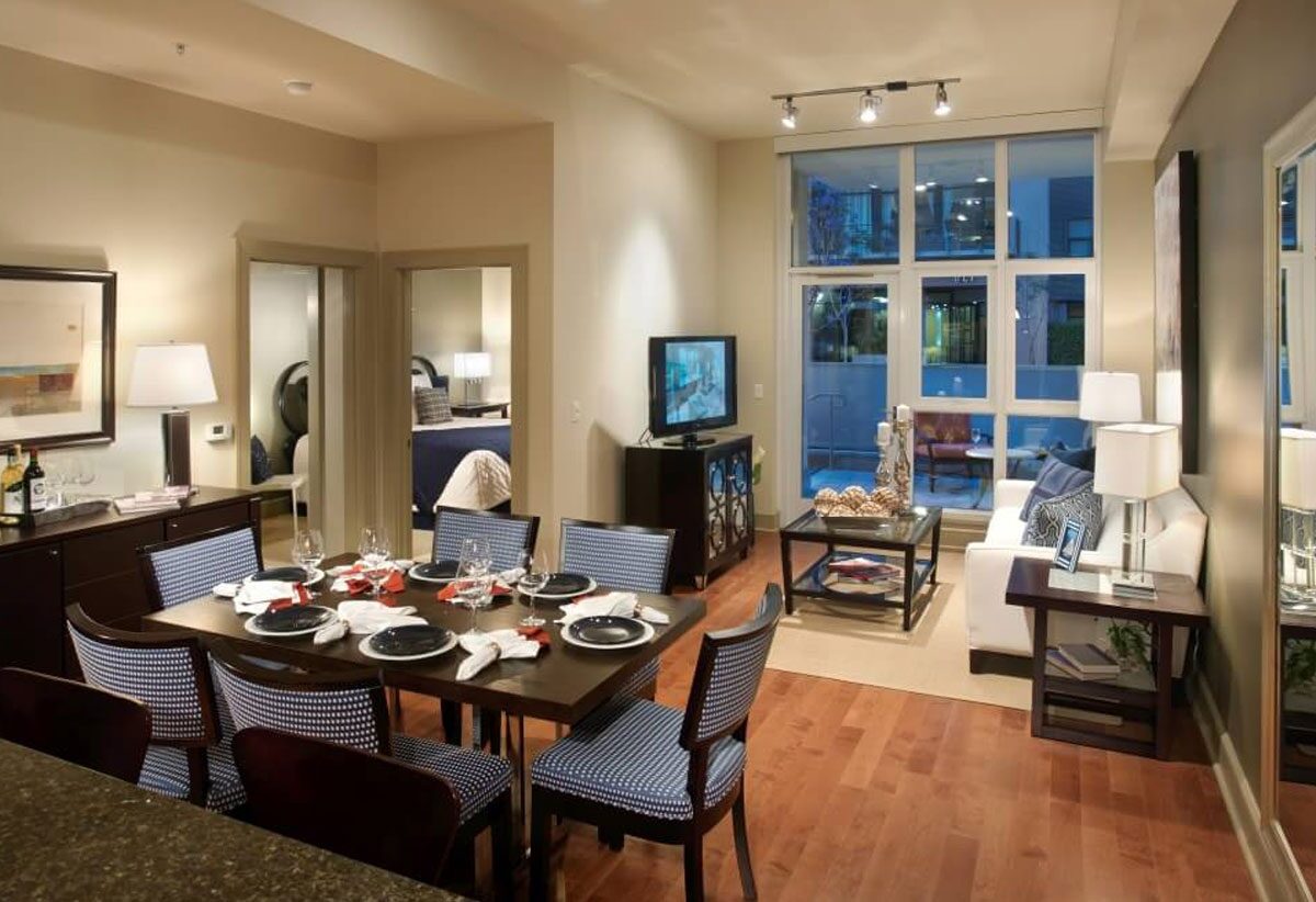 Modern eight story structure offers a contemporary mixed-use building with 207 one, two and three bedroom apartments. With 9,000 square feet of street level retail. Hip urban retreats that function for downtown lifestyles are greeted by a secluded interior courtyard, perfectly landscaped with bamboo, palm trees and a warming fire pit surrounded by seating, which presents the perfect urban oasis. From the gated parking, to the lobby, to your front door, a unique sense of location and style brings you home.
